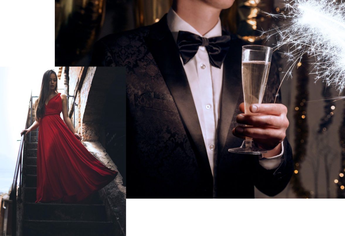 Attention to personal grooming is essential with Black Tie. It’s a perfect excuse to do something special with your hair and makeup. With the Black Tie dress code, the sophistication is in the details. An evening gown is preferred for this dress code, but if you do choose a short dress, wear pantyhose.
